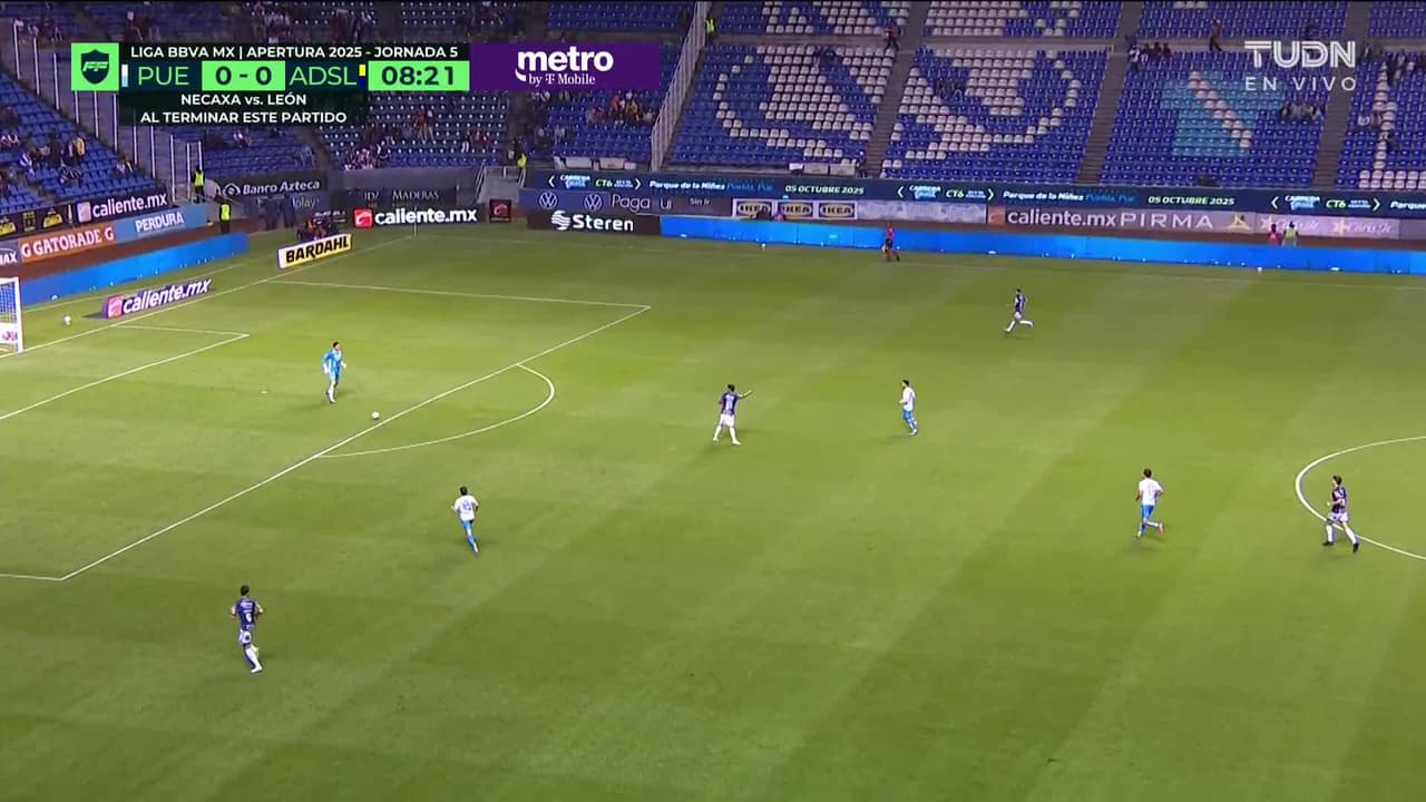 Tiro atajado por abajo a la izquierda. João Pedro (Atlético San Luis) Disparo con la derecha desde fuera del área. Asistencia de Sébastien Salles-Lamonge.