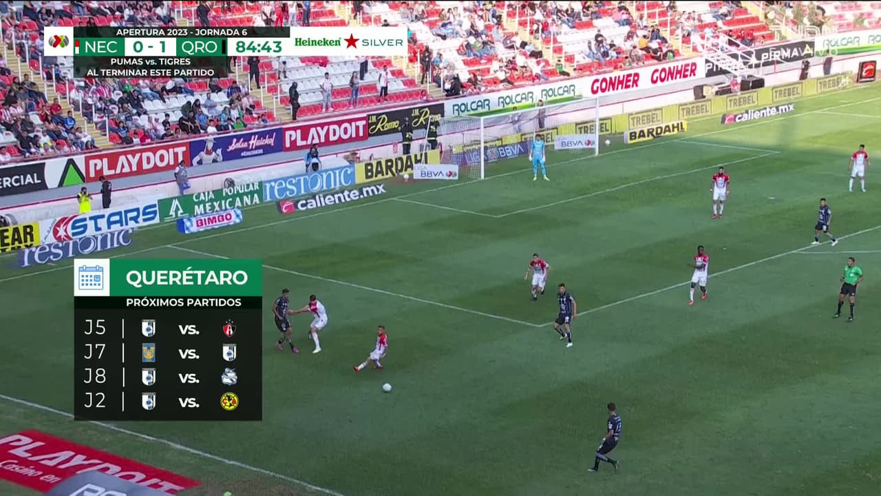 Tiro atajado. Joaquín Montecinos (Querétaro) Disparo con la derecha desde el centro del área.