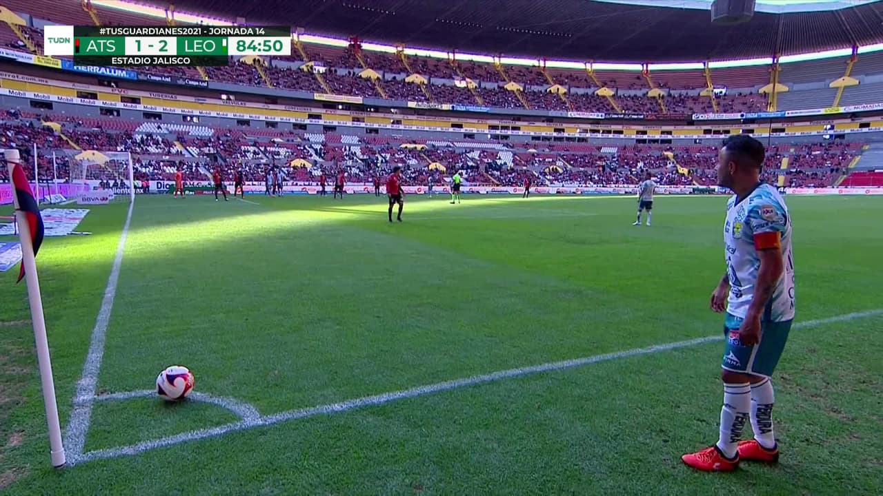 Tiro atajado Por arriba en el centro del arco. Jonathan Ozziel Herrera Morales (Atlas) Disparo con la derecha desde fuera del área.