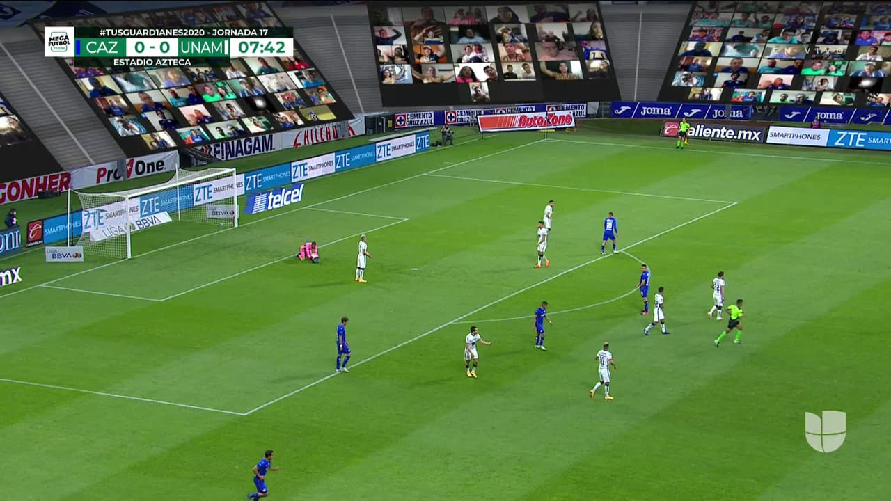 Tiro atajado raso al centro del arco. Jonathan Rodríguez (Cruz Azul) Disparo con la derecha desde fuera del área. Asistencia de Orbelín Pineda.
