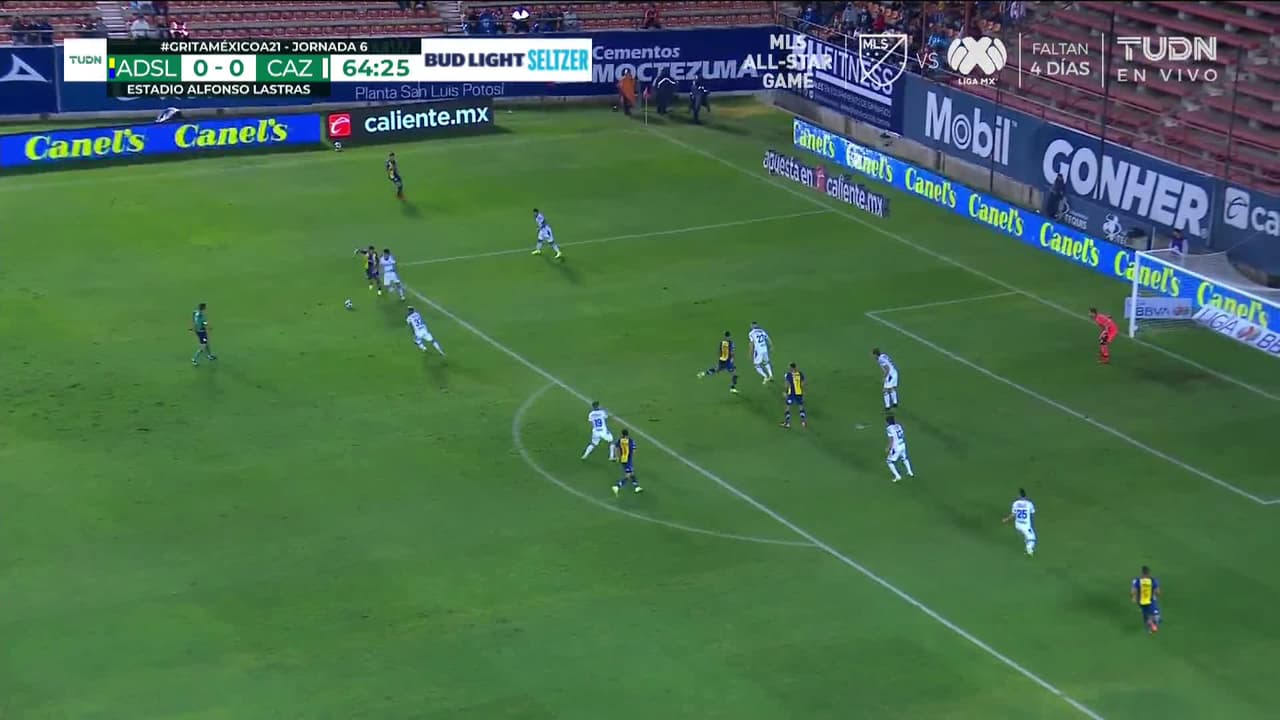 Tiro atajado Por arriba en el centro del arco. Jonathan Rodríguez (Cruz Azul) disparo de cabeza desde el centro del área. Asistencia de Pablo Aguilar pase largo.