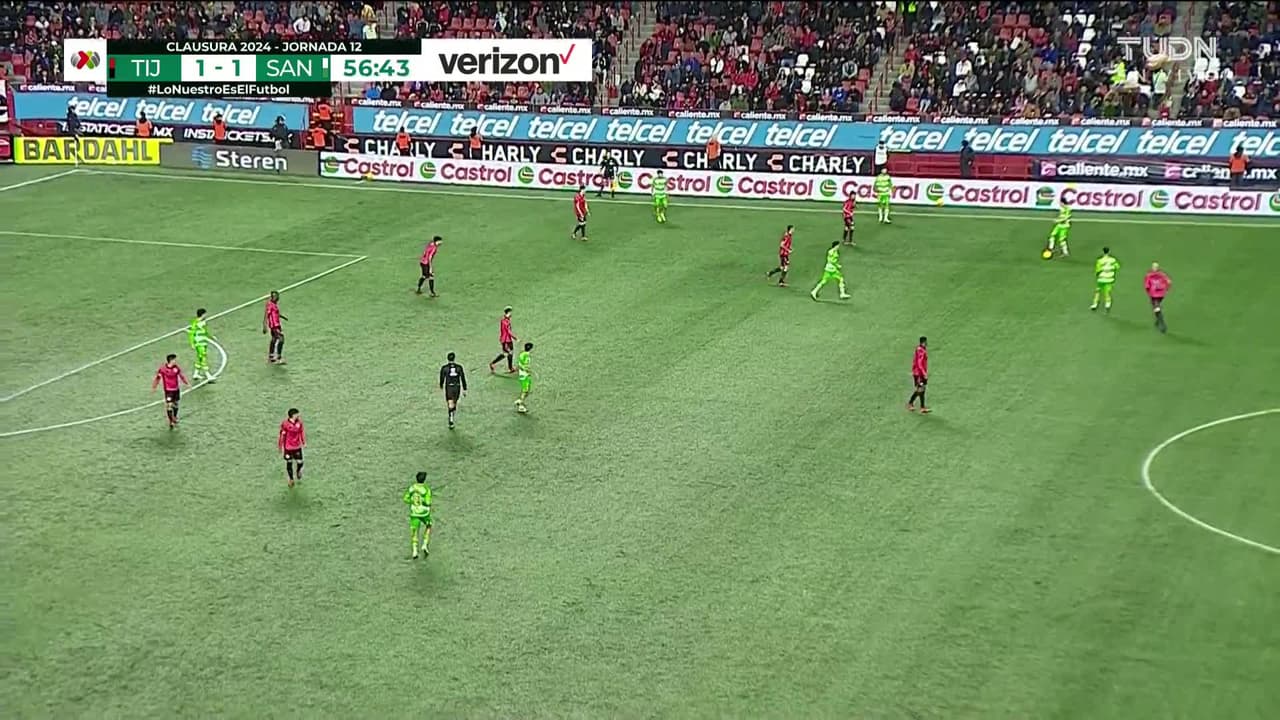 Tiro atajado por abajo a la izquierda. Jordán Carrillo (Santos Laguna) Disparo con la derecha desde fuera del área. Asistencia de Aldo López.