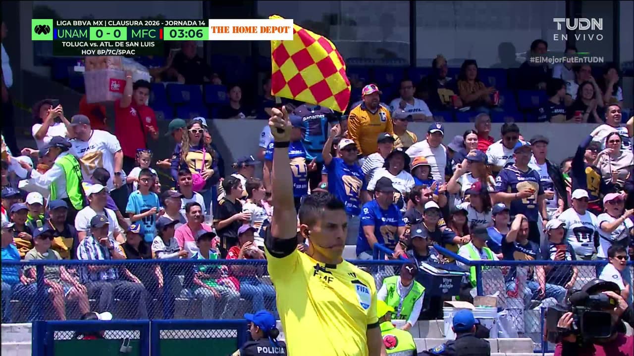 Tiro atajado raso al centro del arco. Jordán Carrillo (Pumas UNAM) Disparo con la derecha desde el centro del área. Asistencia de Robert Morales.