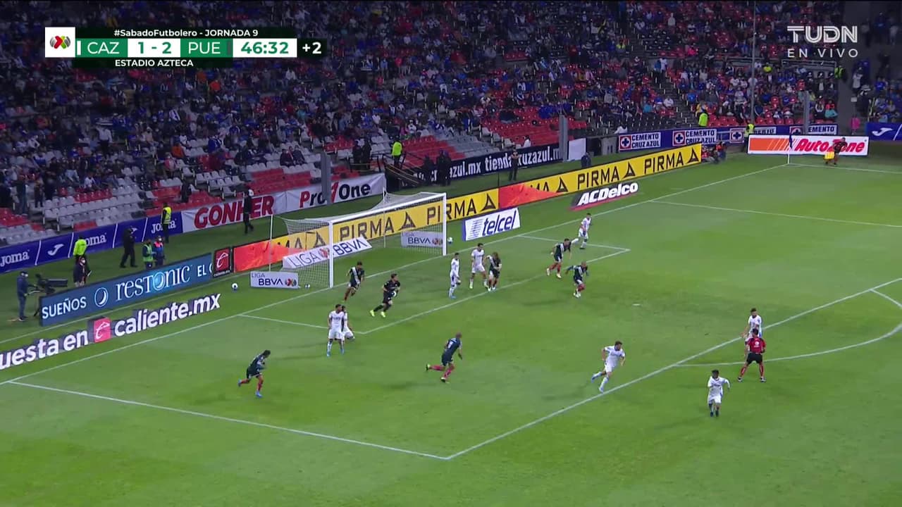 Tiro atajado raso al centro del arco. Jordi Cortizo (Puebla) zurdazo desde fuera del área.