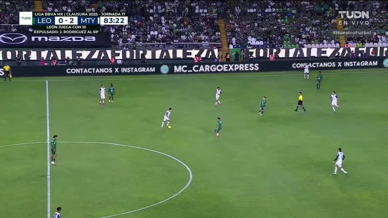 Tiro atajado raso al centro del arco. Jordi Cortizo (Monterrey) zurdazo desde fuera del área.