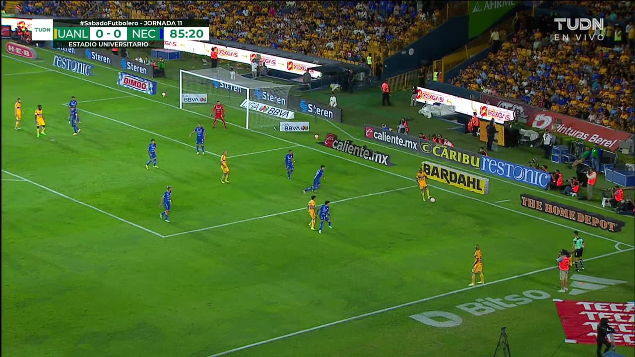 Tiro atajado por abajo a la izquierda. Jordy Caicedo (Tigres) disparo de cabeza desde el centro del área. Asistencia de Luis Quiñones con un centro al área.
