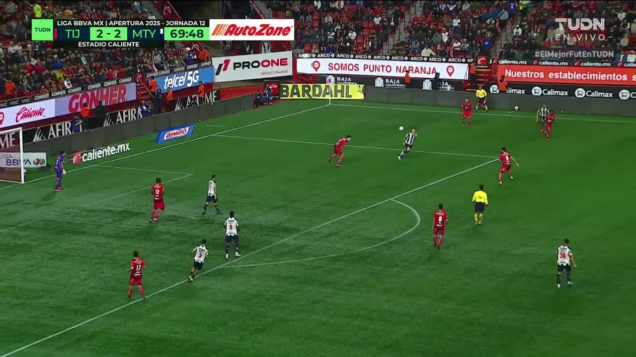 Tiro atajado raso al centro del arco. Jorge Rodríguez (Monterrey) Disparo con la derecha desde fuera del área.