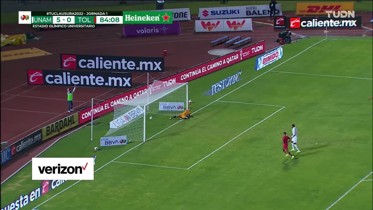 Tiro atajado raso al centro del arco. Jorge Ruvalcaba (Pumas UNAM) Disparo con la derecha desde el centro del área. Asistencia de Emanuel Montejano.