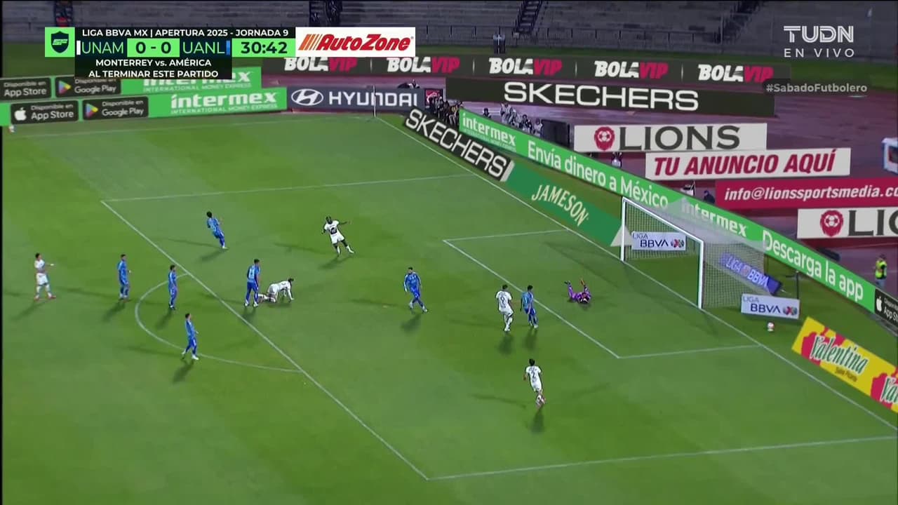 Tiro atajado junto al lado derecho de la portería. Jorge Ruvalcaba (Pumas UNAM) Disparo con la derecha desde fuera del área. Asistencia de Pedro Vite.