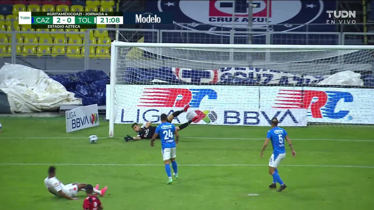 Tiro atajado raso al centro del arco. Jorge Torres (Toluca) zurdazo desde fuera del área. Asistencia de Claudio Baeza.