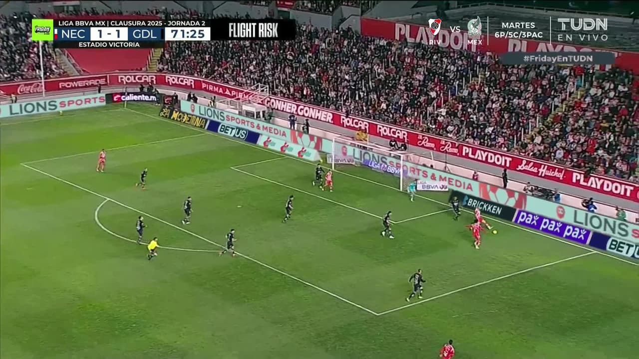 Tiro atajado al ángulo superior derecho. José Paradela (Necaxa) zurdazo desde fuera del área. Asistencia de José Rodríguez pase largo.