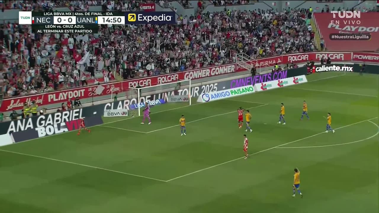 Tiro atajado al ángulo superior derecho. José Paradela (Necaxa) zurdazo desde fuera del área. Asistencia de Johan Rojas.