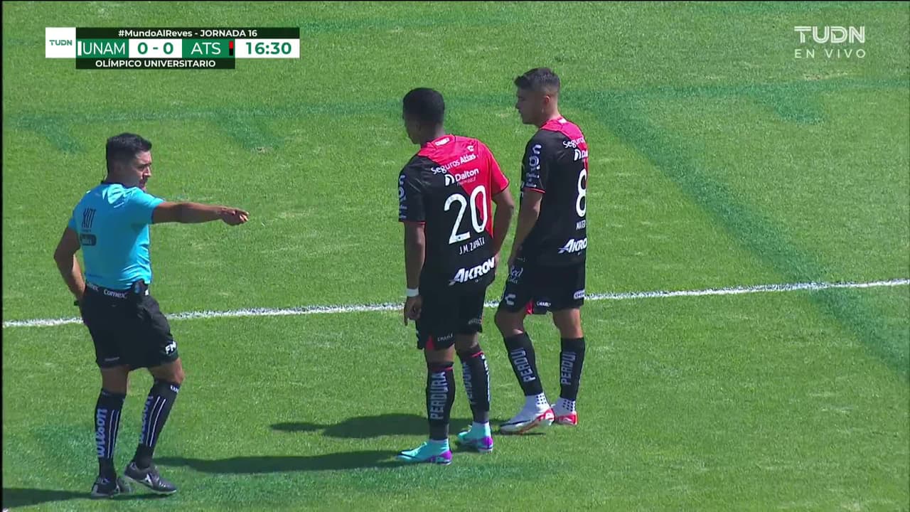 Tiro atajado. Juan Dinenno (Pumas UNAM) disparo de cabeza desde el centro del área.