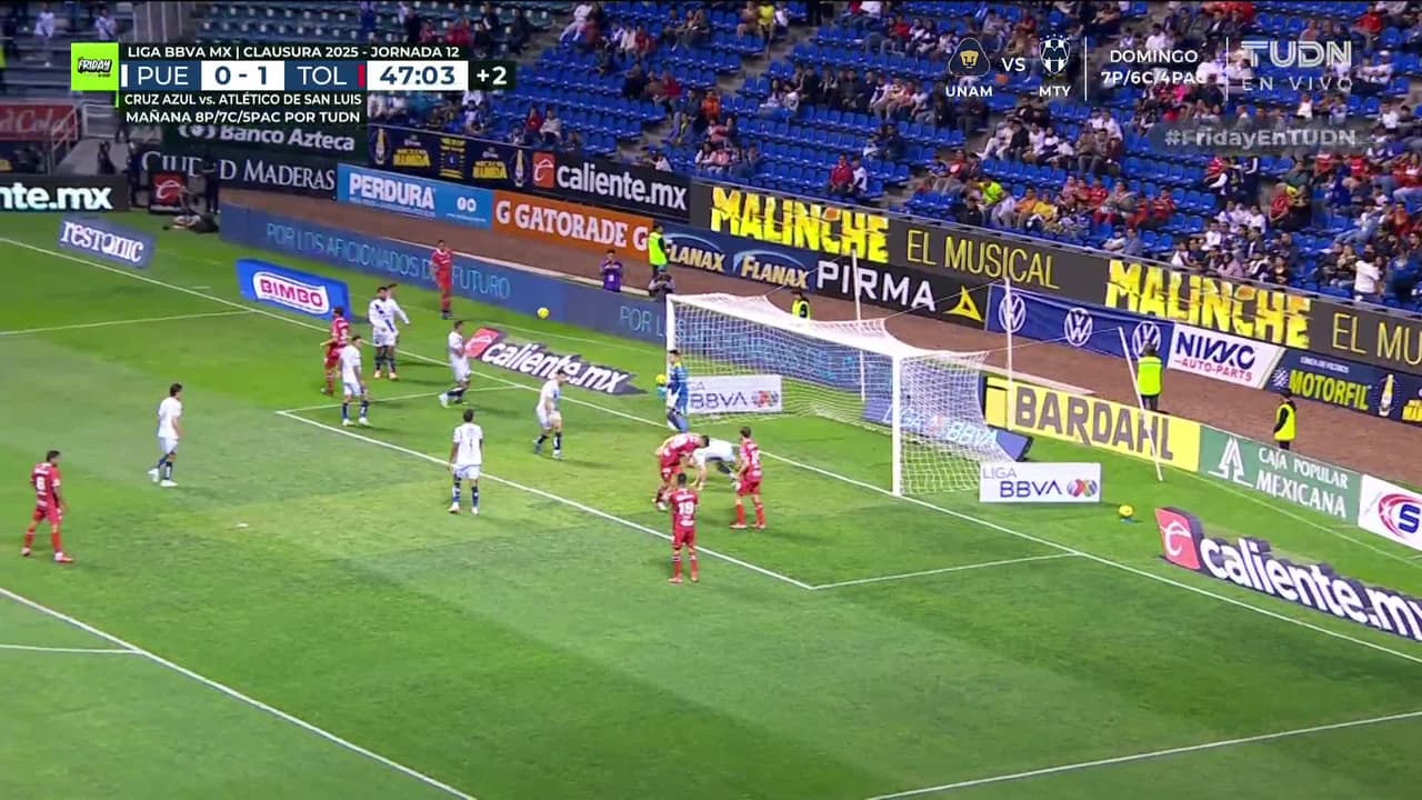 Tiro atajado por abajo a la izquierda. Juan Domínguez (Toluca) Disparo con la derecha desde el lado izquierdo dentro del área. Asistencia de Alexis Vega.