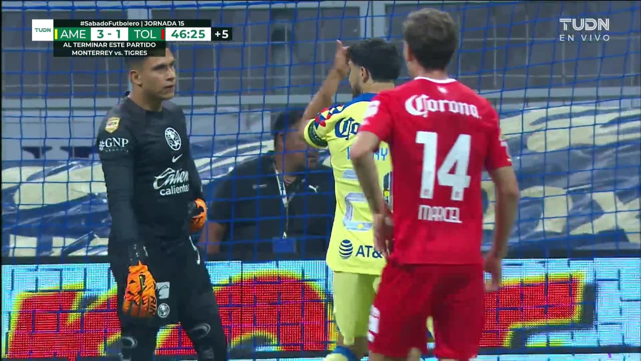 Tiro atajado. Juan Escobar (Toluca) disparo de cabeza desde el centro del área.