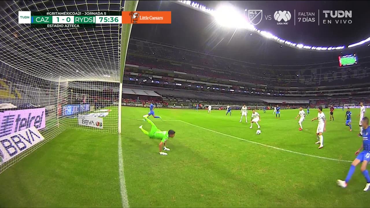 Tiro atajado por abajo a la izquierda. Juan Escobar (Cruz Azul) disparo de cabeza desde el centro del área. Asistencia de Yoshimar Yotún con un centro al área.