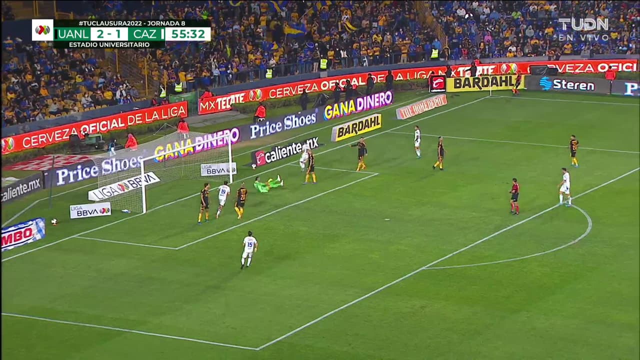 Tiro atajado junto al lado derecho de la portería. Juan Escobar (Cruz Azul) Disparo con la derecha desde el lado derecho dentro del área. Asistencia de Santiago Giménez.