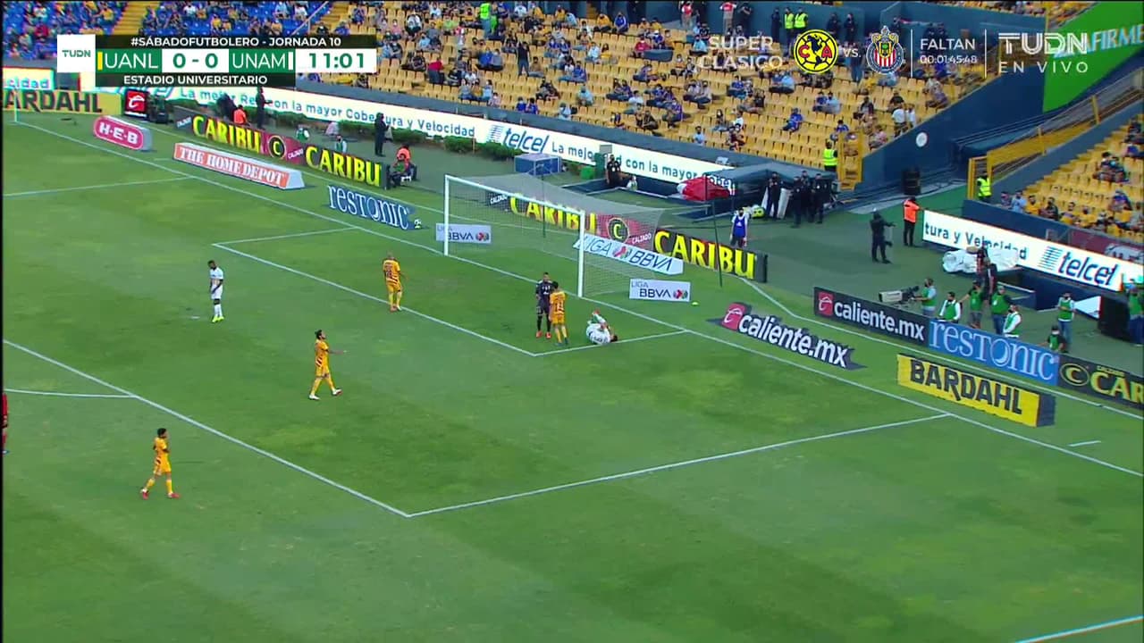 Tiro atajado junto al lado derecho de la portería. Juan Ignacio Dinenno (Pumas UNAM) Disparo con la derecha desde fuera del área. Asistencia de Favio Álvarez pase largo.