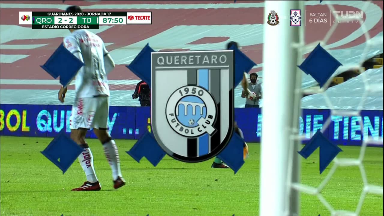Tiro atajado Por arriba en el centro del arco. Juan Meza (Querétaro) Disparo con la derecha desde fuera del área.