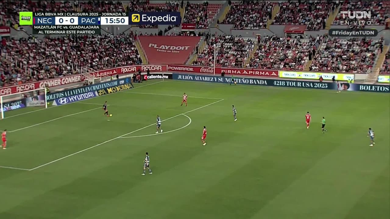 Tiro atajado. Juan Sigala (Pachuca) zurdazo desde fuera del área.