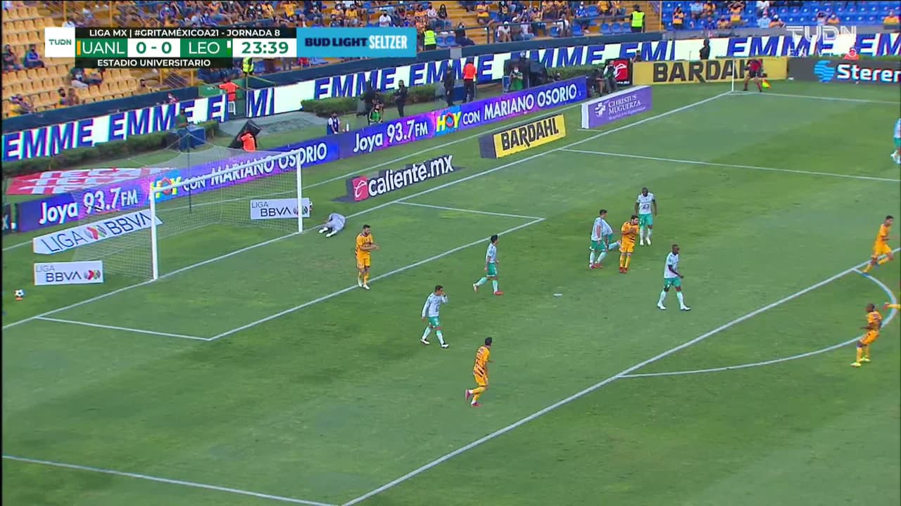 Remate parado. Juan Vigón (Tigres UANL) remate con la derecha desde el centro del área.