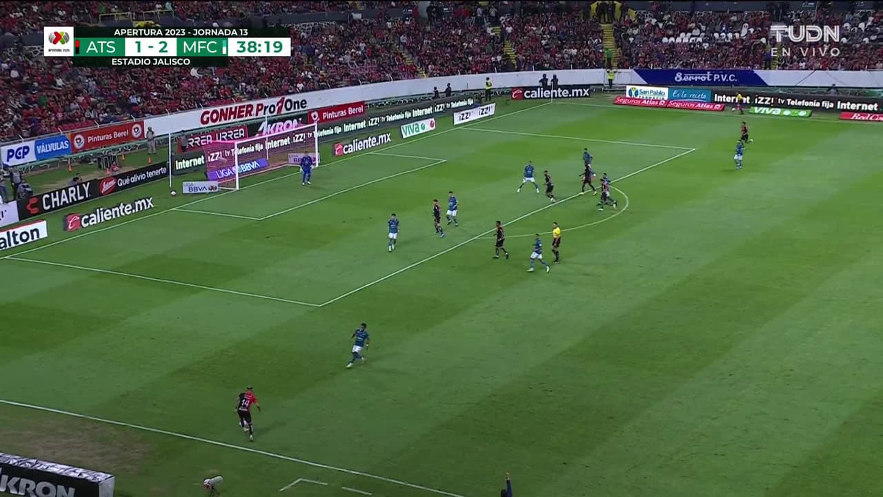 Tiro atajado raso al centro del arco. Juan Zapata (Atlas) Disparo con la derecha desde fuera del área. Asistencia de Luis Reyes.