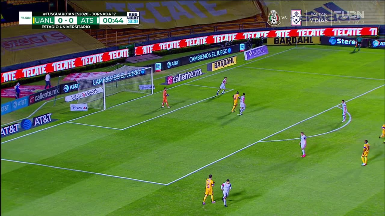 Tiro atajado por abajo a la izquierda. Julián Quiñones (Tigres) Disparo con la derecha desde fuera del área. Asistencia de Jesús Dueñas.