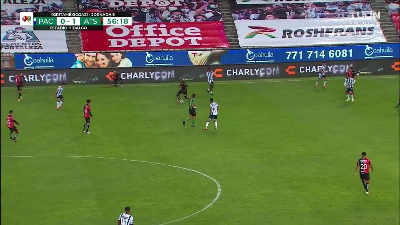 Tiro atajado. Julio Furch (Atlas) zurdazo desde el centro del área.