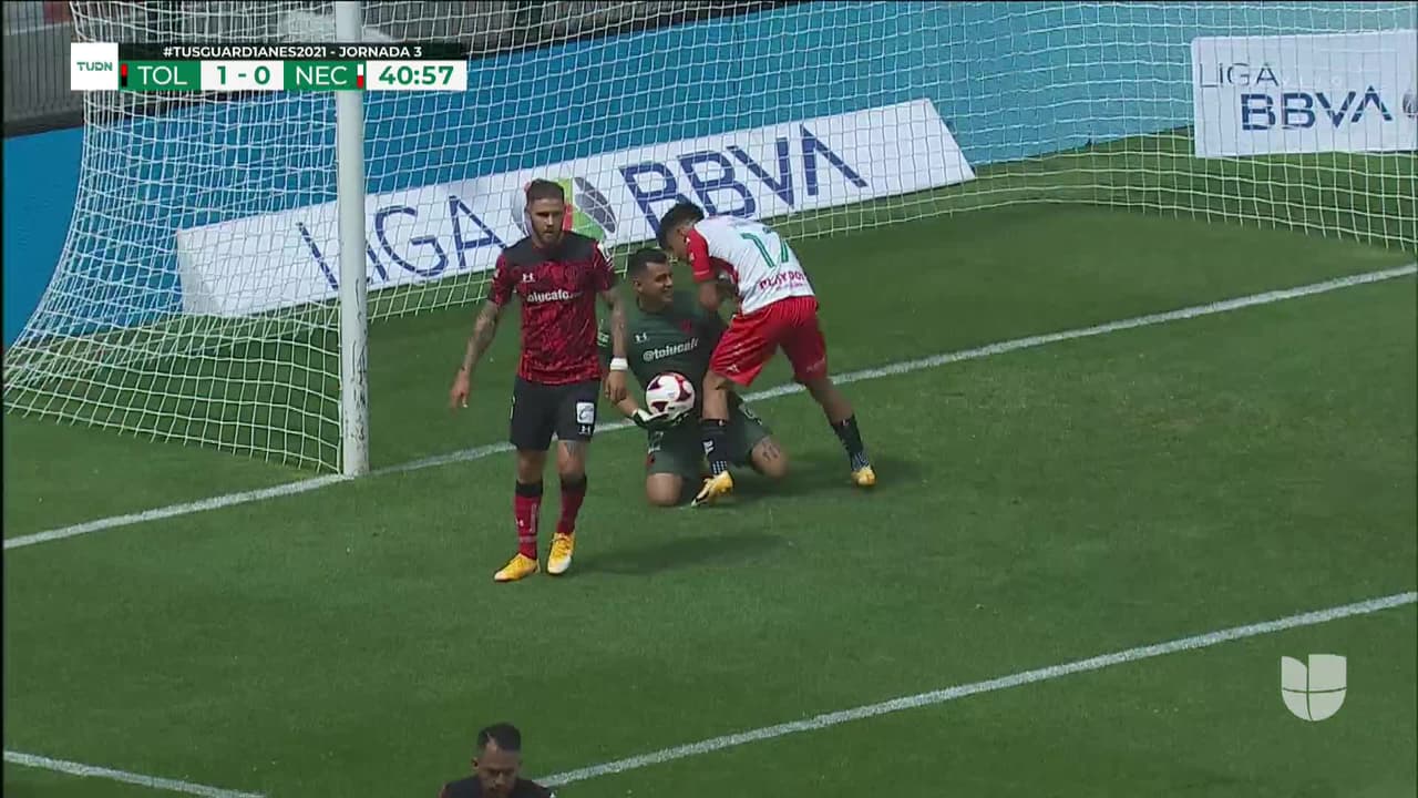 Tiro atajado por abajo a la izquierda. Julio González (Necaxa) Disparo con la derecha desde más de 30 metros.