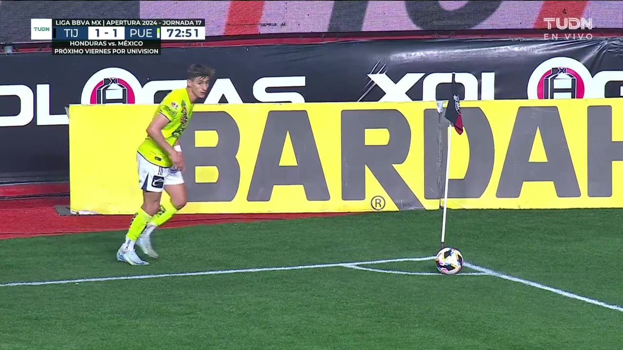 Tiro atajado. Kevin Castañeda (Club Tijuana) Disparo con la derecha desde fuera del área.