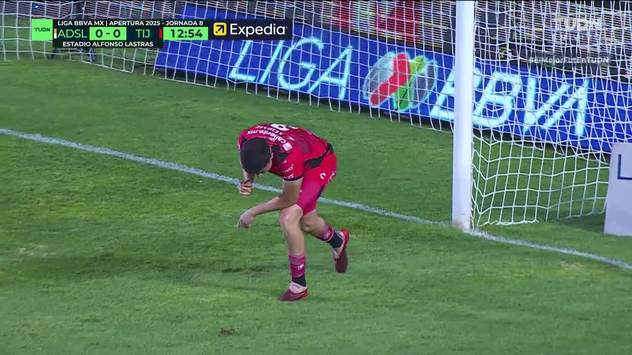 Tiro atajado junto al lado derecho de la portería. Kevin Castañeda (Club Tijuana) Disparo con la derecha desde la banda izquierda.