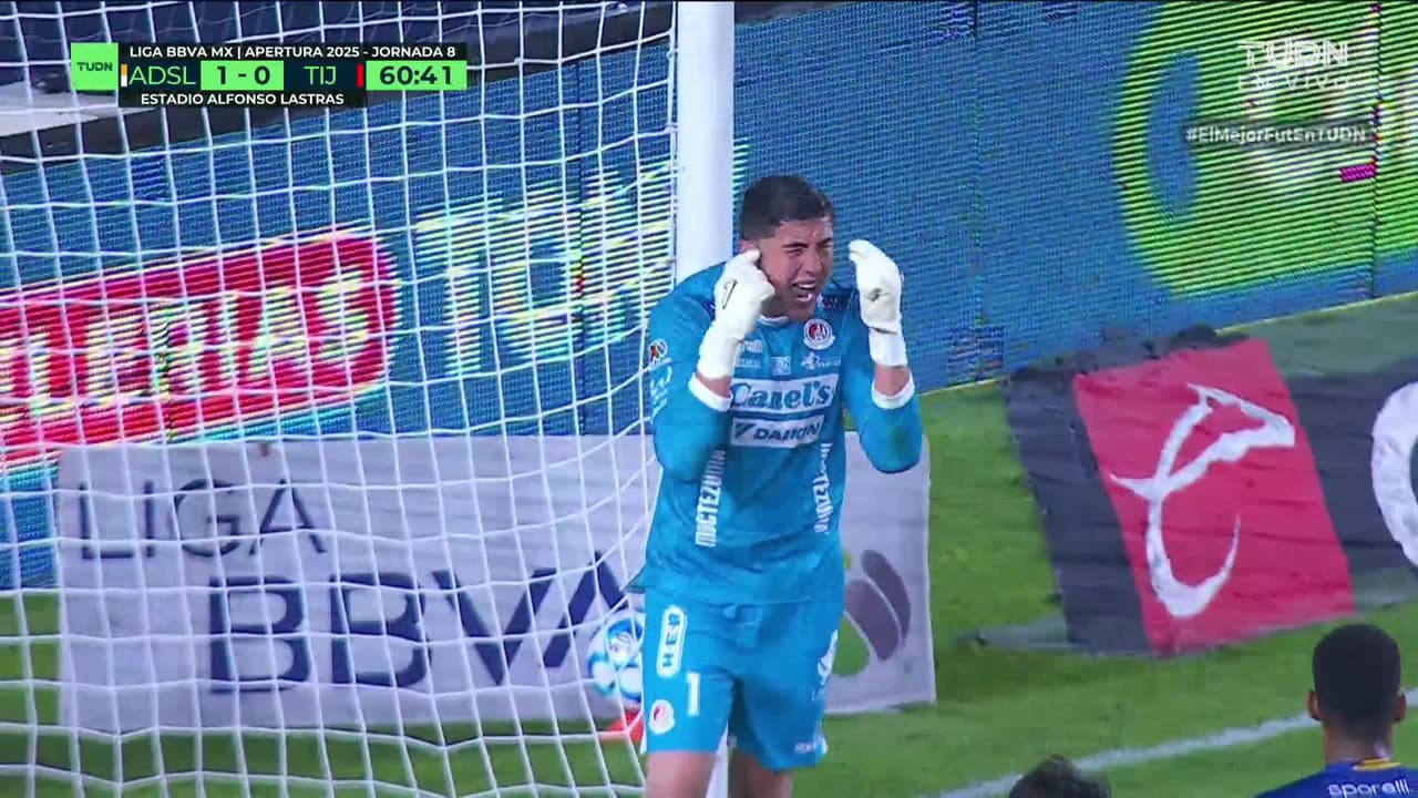 Tiro atajado. Kevin Castañeda (Club Tijuana) Disparo con la derecha desde fuera del área.