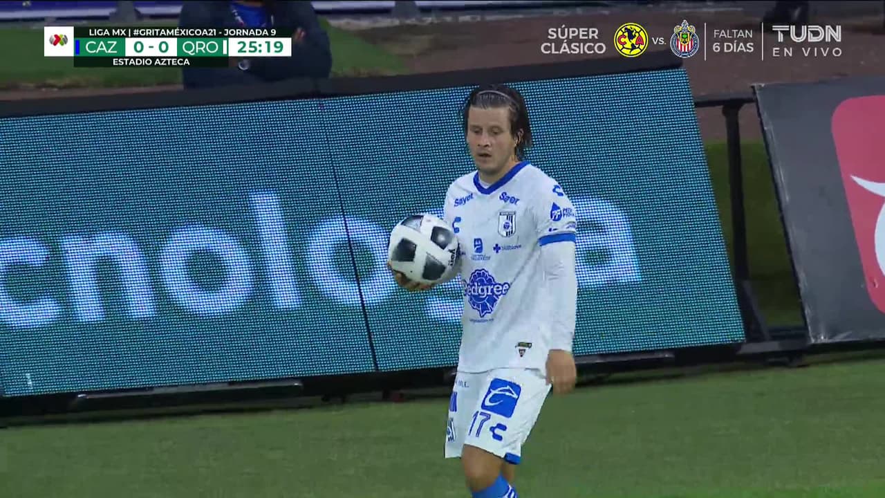 Remate parado bajo palos a rás de suelo. Kevin Escamilla (Querétaro) remate con la derecha desde fuera del área. Asistencia de Erik Vera.