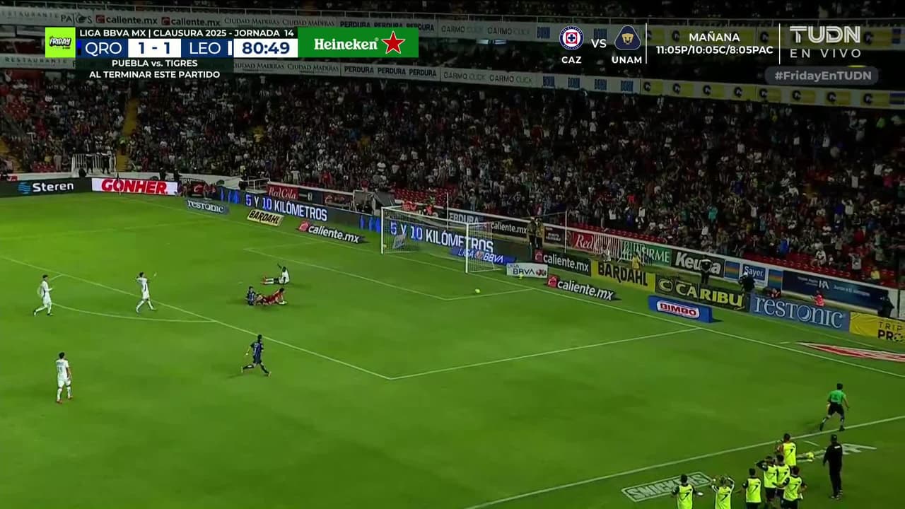 Tiro atajado junto al lado derecho de la portería. Kevin Escamilla (Querétaro) Disparo con la derecha desde el centro del área.