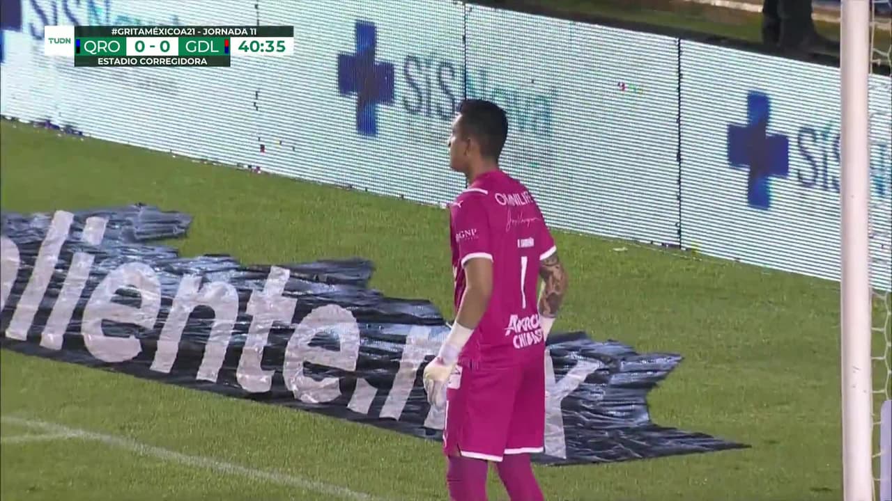 Remate parado. Kevin Ramírez (Querétaro) remate con la izquierda desde el centro del área.