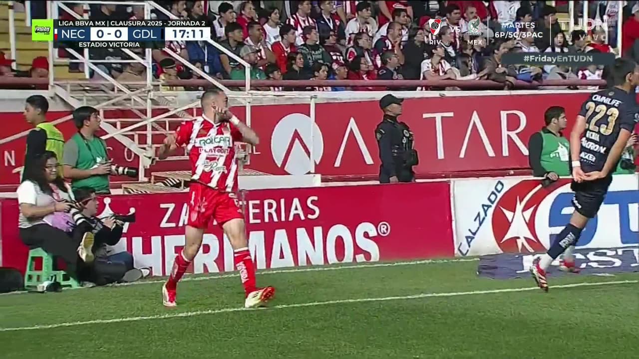 Tiro atajado raso al centro del arco. Kevin Rosero (Necaxa) Disparo con la derecha desde el centro del área. Asistencia de Alejandro Mayorga con un centro al área.
