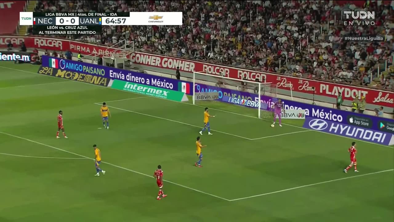 Tiro atajado junto al lado derecho de la portería. Kevin Rosero (Necaxa) Disparo con la derecha desde fuera del área. Asistencia de José Rodríguez.