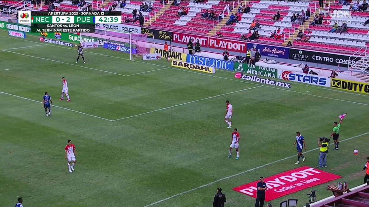 Tiro atajado. Kevin Velasco (Puebla) zurdazo desde fuera del área.
