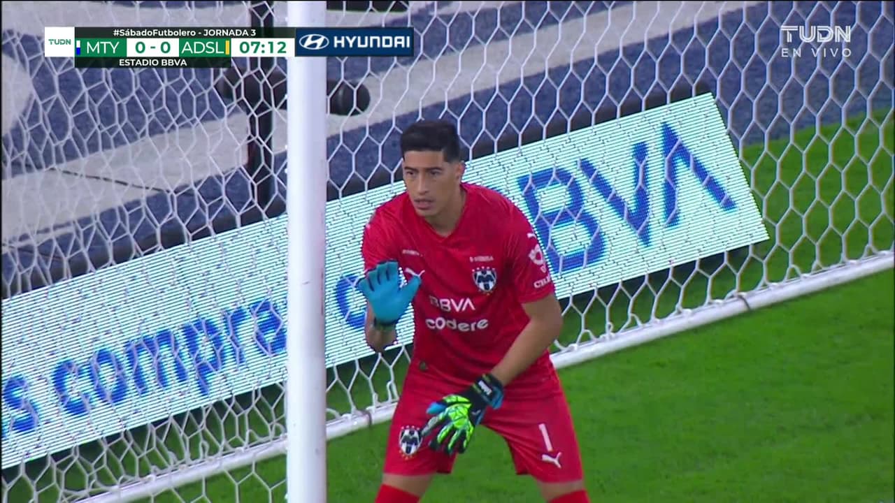 Tiro atajado. Léo Bonatini (Atlético San Luis) Disparo con la derecha desde muy cerca.