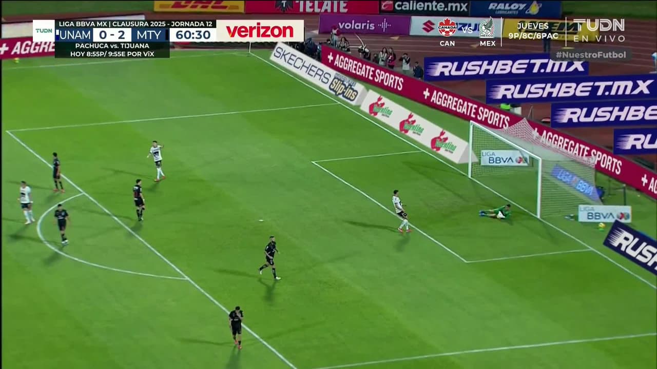 Tiro atajado junto al lado derecho de la portería. Leo Suárez (Pumas UNAM) zurdazo desde fuera del área. Asistencia de Adalberto Carrasquilla.