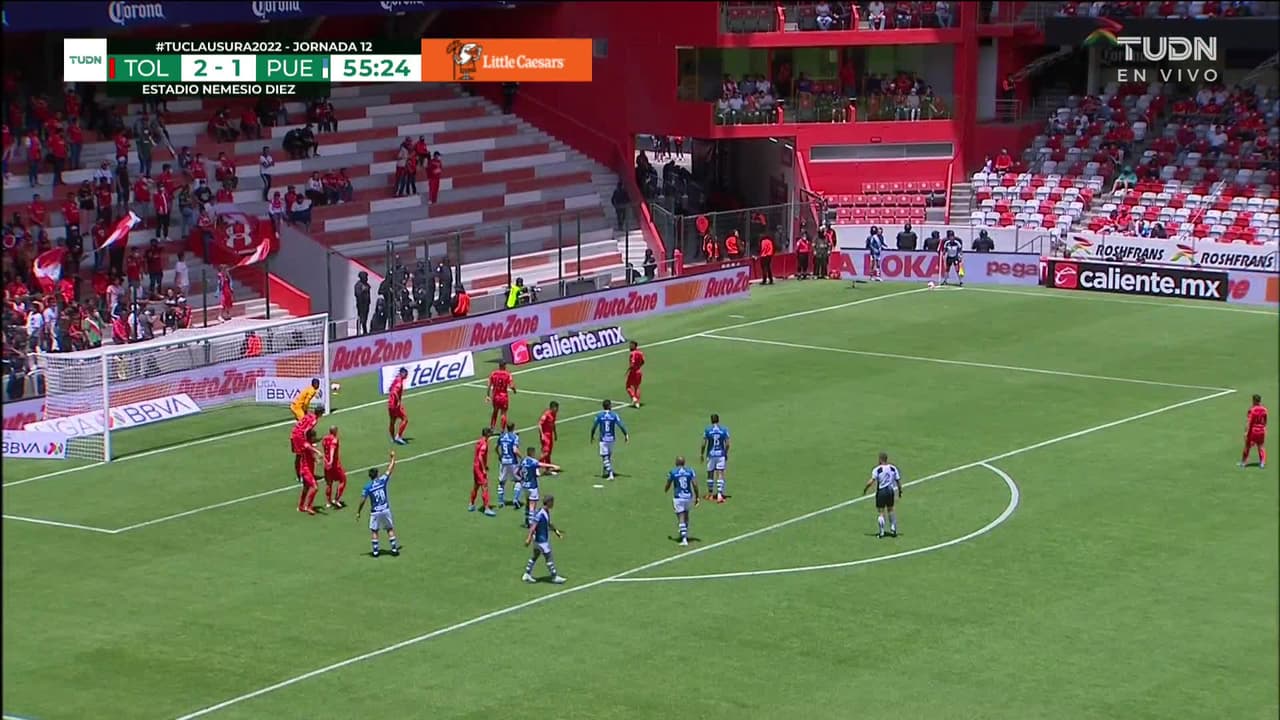 Tiro atajado por abajo a la izquierda. Leonardo Fernández (Toluca) Disparo con la derecha desde el centro del área. Asistencia de Kevin Castañeda con un centro al área.