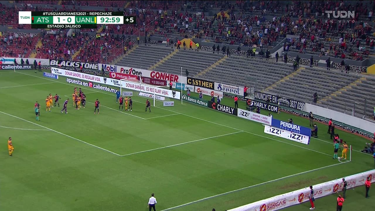 Tiro atajado Por arriba en el centro del arco. Leonardo Fernández (Tigres) zurdazo desde fuera del área. Asistencia de Rafael Carioca.