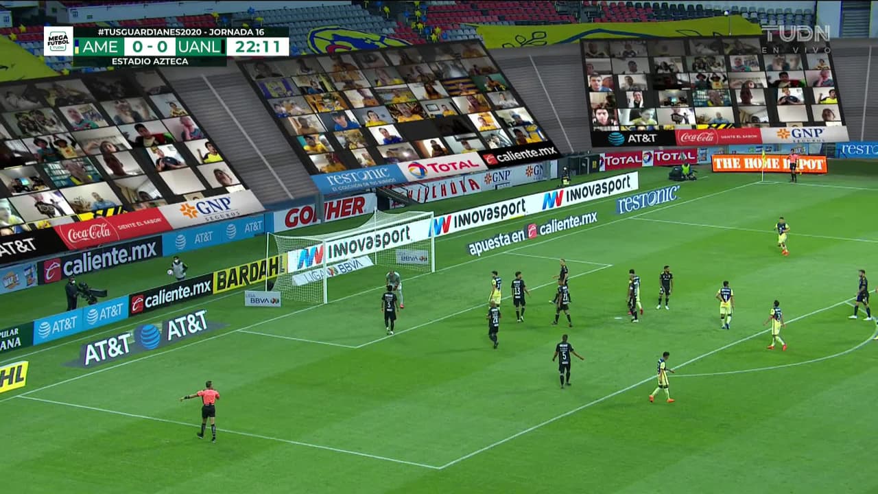 Tiro atajado por abajo a la izquierda. Leonardo Gabriel Suárez (América) zurdazo desde fuera del área.