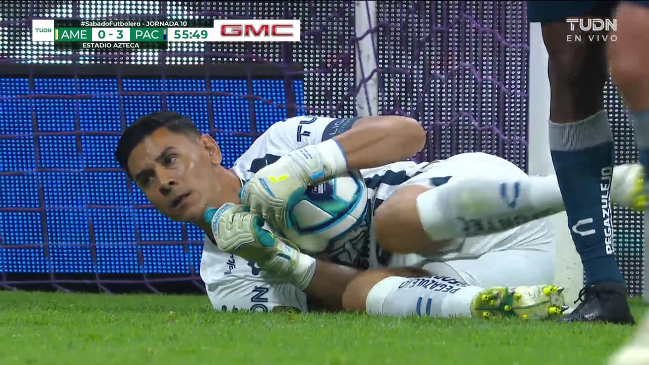 Tiro atajado. Leonardo Suárez (América) zurdazo desde el lado derecho dentro del área.