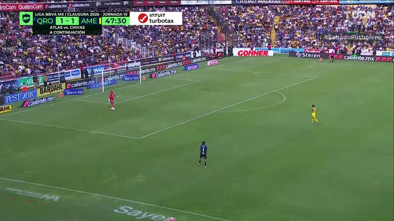 Tiro atajado junto al lado derecho de la portería. Lima (América) Disparo con la derecha desde el lado izquierdo dentro del área. Asistencia de Jonathan dos Santos pase largo.
