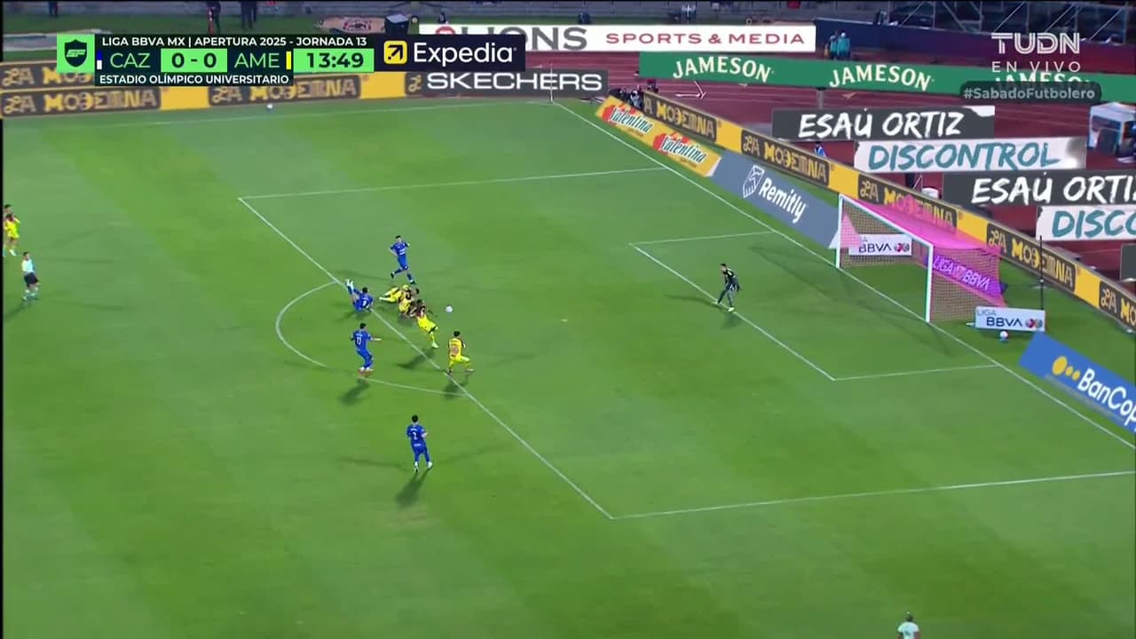 Tiro atajado. Lorenzo Faravelli (Cruz Azul) Disparo con la derecha desde fuera del área.