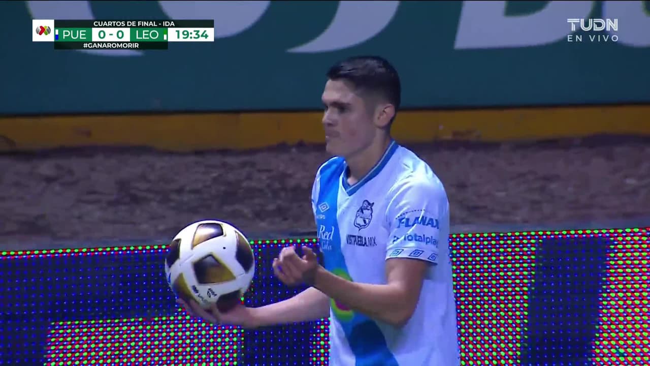 Tiro atajado por abajo a la izquierda. Lucão (Puebla) Disparo con la derecha desde fuera del área.