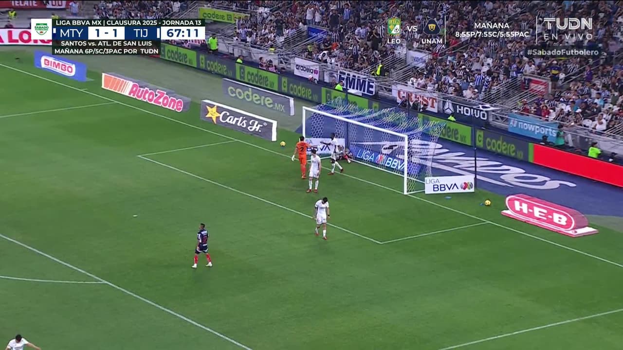 Tiro atajado raso al centro del arco. Lucas Ocampos (Monterrey) Disparo con la derecha desde la banda izquierda. Asistencia de Sergio Canales.