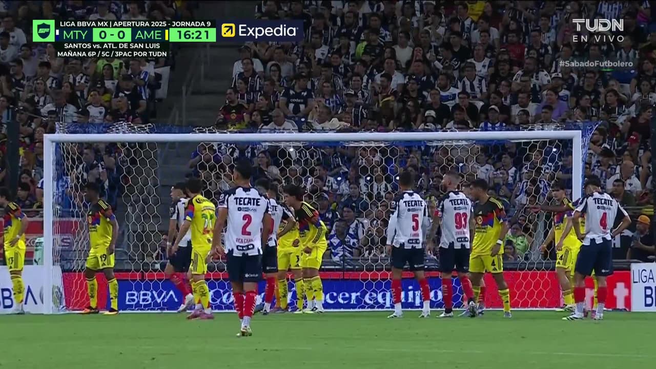 Tiro atajado Por arriba en el centro del arco. Lucas Ocampos (Monterrey) disparo de cabeza desde el centro del área. Asistencia de Sergio Canales con un centro al área.