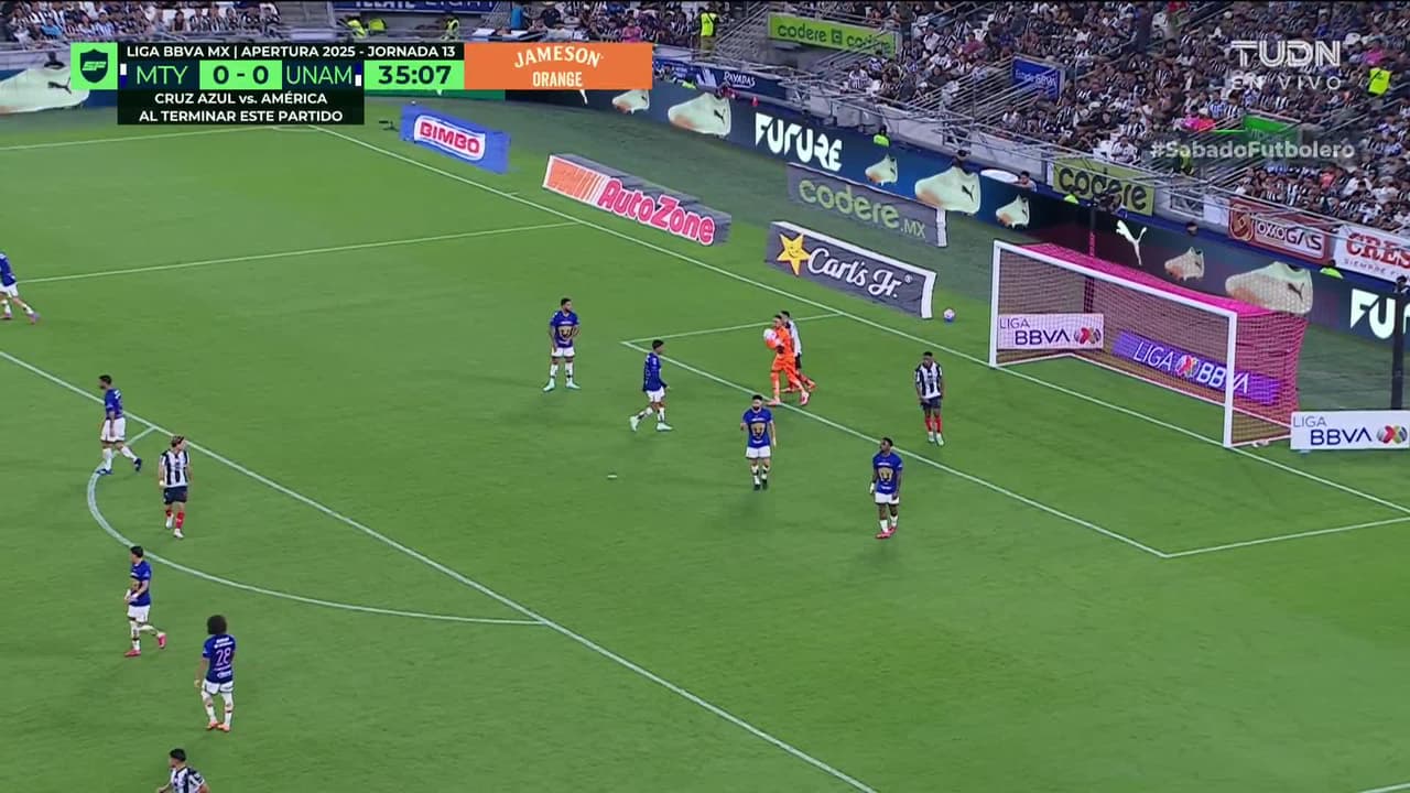 Tiro atajado. Lucas Ocampos (Monterrey) Disparo con la derecha desde fuera del área.